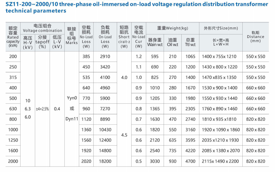 SZ11-200~2000/10 Trefaset olienedsænket on-load spændingsregulering og distributionstransformator