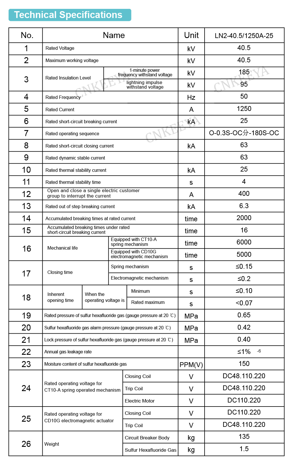 LN2-40.5-modellen kan udstyres med en CT10-A fjederbetjent mekanisme eller en CD10G elektromagnetisk betjent mekanisme.