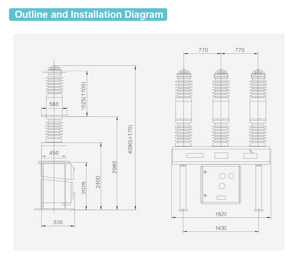 LW16-40.5 Udendørs svovlhexafluorid-kredsløbsafbryder er udstyret med en CT20-fjederbetjeningsmekanisme, som anvender selvenergibue-slukningsprincippet og en enkelt brudstruktur. De tre poler på hver afbryder er monteret på en ramme og opnår trefaset mekanisk forbindelse gennem en transmissionsmekanisme. Elektronisk styring kan opnå fjernbetjening og lokal betjening.