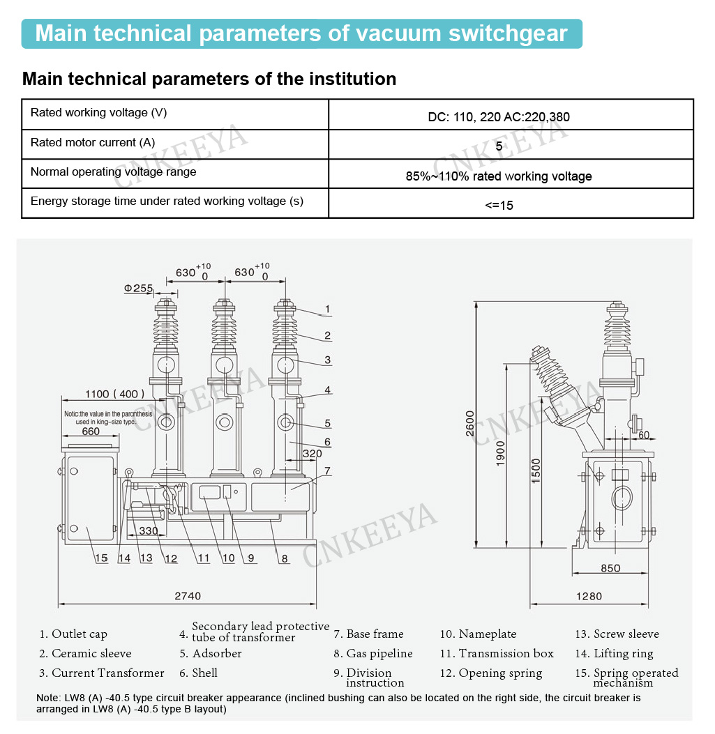 Afbryderen er en udendørs lille gulvtankkonstruktion, udstyret med CT14 fjederbetjent mekanisme; Mekanismen er installeret i forbindelse med hoveddelen, med enkel installation, bekvem fejlfinding, pålidelig drift og egnet til hyppig drift; Institutionen har en levetid på over 3000 gange;
